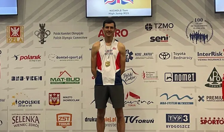 The 3000m were the only track finals taking place at the famous indoor arena but the first gold medal of the day went to M35 high jumper Nichols.