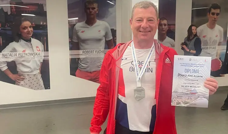 Other high jump medals went the way of M45 high jumper Clint Nicholls who cleared 1.80m for second a position matched by M50 Andrew England and M60 Steve Linsell who both jumped 1.60m.