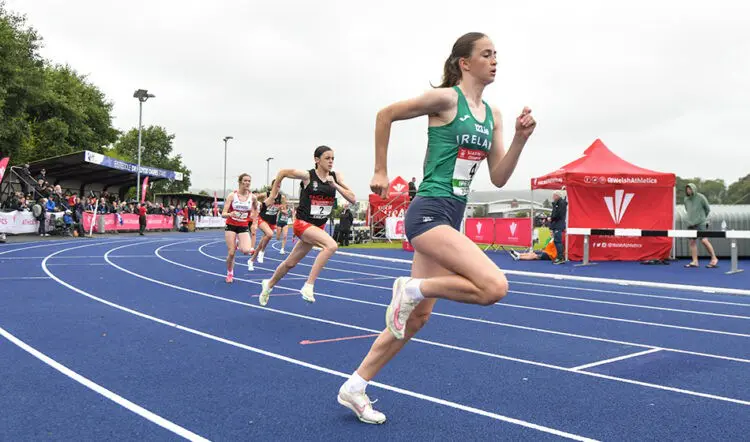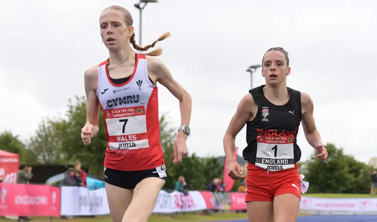 800: 1 M Grant (Linc W) 2:09.13; 2 F Mannion (IRL) 2:10.41; 3 F Bateman (Carm) 2:10.48; 4 N Wynn (WG&EL) 2:12.26; 5 S Wilson (Giff N) 2:13.49; 6 E McArthur (Ork) 2:14.84; 7 A Brady (Newp) 2:14.97. 1500: 1 L Hale (Swan) 4:17.46; 2 O Steer (Exe) 4:23.53; 3 F East (Ports) 4:28.60; 4 E Cooney (IRL) 4:30.23; 5 E Dallas (Strathe) 4:30.29; 6 B Boyce (Card, U15) 4:31.10; 7 L Ryan (IRL) 4:37.76.