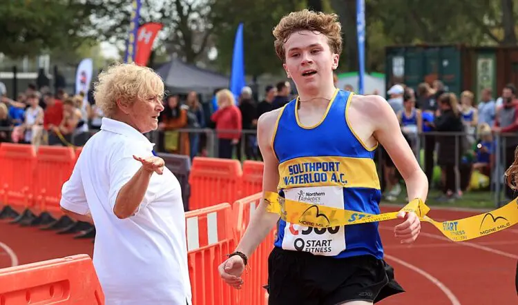 The under-15 boys’ race went to Southport Waterloo after their William Delamere had given his club a narrow led over Warriors’ Michael Phelan on the first leg with a 9:48 effort that stood as the age group best.