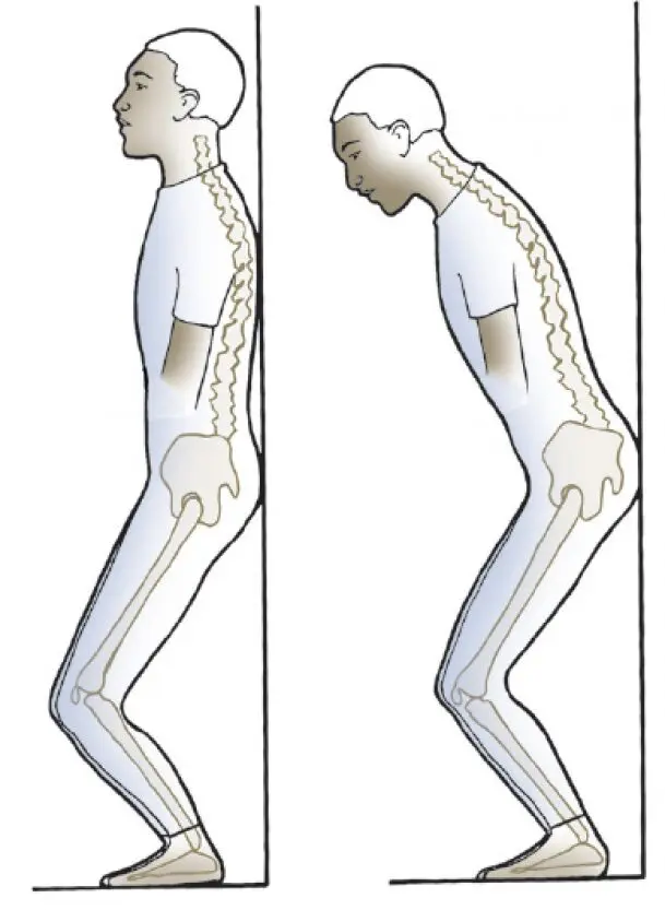 Alexander discovered that because of a variety of environmental factors, the most important of which was sedentarism, most of his students attempting to bend were not starting out from a balanced vertical attitude but from either an upright slump or collapse, or a stiff, military-style posture. Both positions are biomechanically inefficient, for example, standing up straight military-style takes up around 30% more energy than relaxed standing.